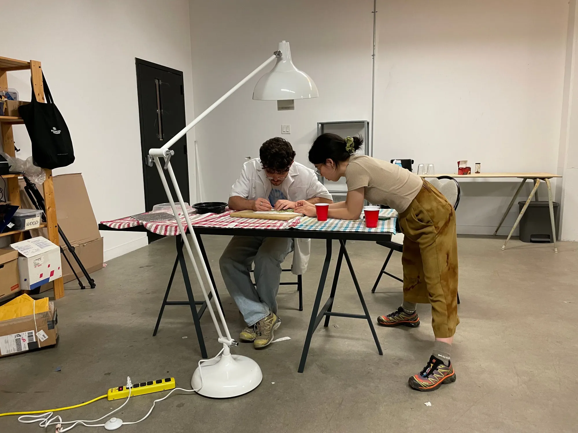 Emi: An idea I’ve been floating with friends, especially with Rebecca Wilkinson, is organizing a large-scale, collaborative workshop. We’d design a series of workstations with prompts that use unconventional tools and analog materials to encourage experimentation, performance, and play — everything tied around a theme, including the setting, the food, the music, the dress code. A full day event that engages all the senses.