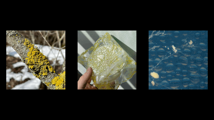 Siber: There’s a project log from 2021 where Emi talks about using “the usual tools” — I think that meant Adobe suite software. Now, for both of you, “usual tools” could encompass anything, from a bacteria strain to a multi-mirrored lens contraption.