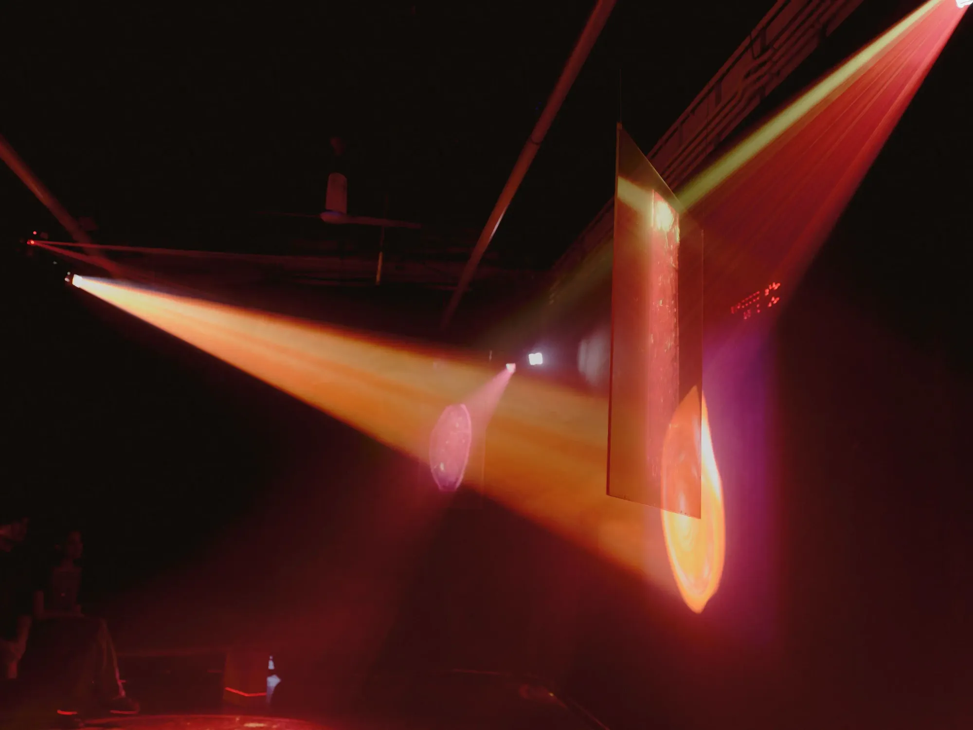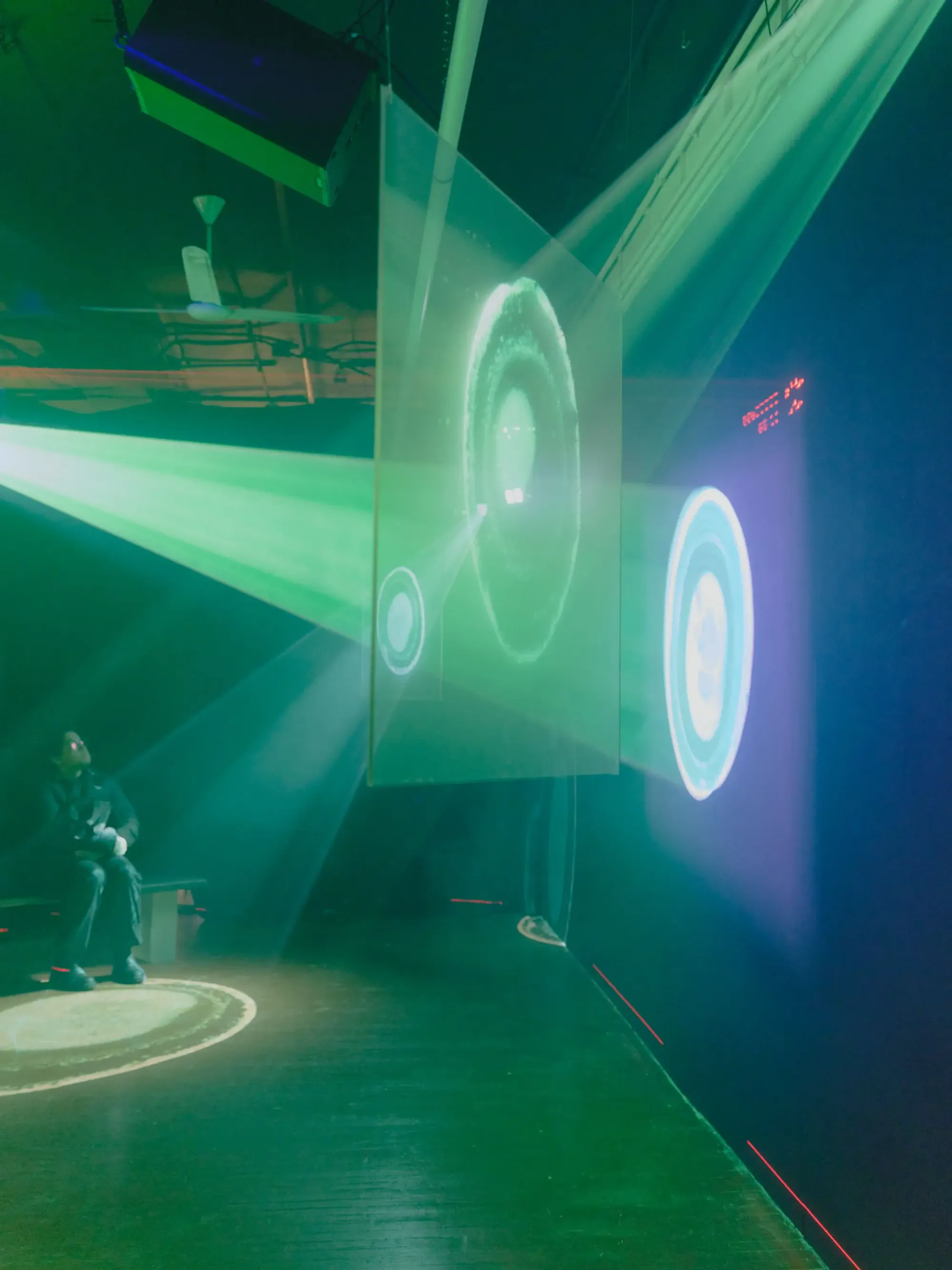 Siber: When I first walked past the curtains, for a moment, I just assumed the laser scans were part of the projection. Realizing it’s a separate machine, doing its own dance, added another level of fascination.