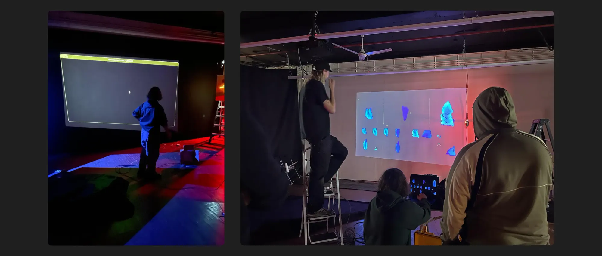 Ben: It was taking too long to export and render from ImageJ, so Johan and I had to figure out how to render the 2D into 3D, animating that in real time, and transitioning between videos smoothly over the course of infinity. It’s really delicate. Even getting the cameras to zoom in and out without breaking everything. The software searches through these massive folders on a drive. Johan vibe-coded that one to success.